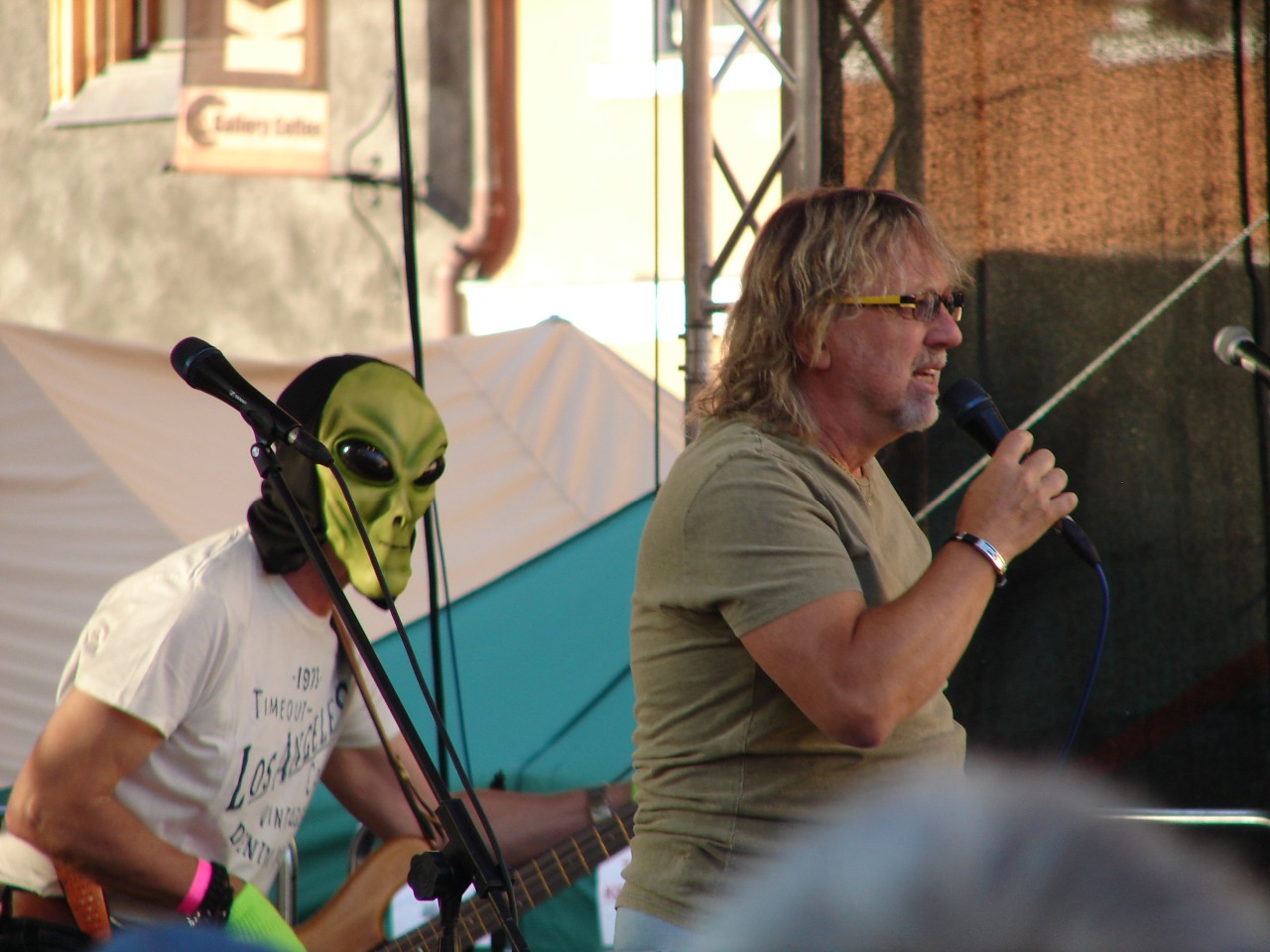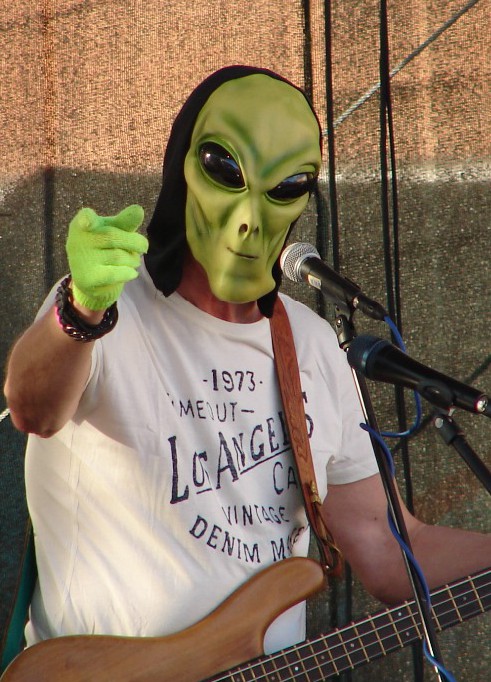Jak je z přiložené fotografie vidět, mimozemšťané (na fotografii ten zelený) pronikli i na koncert Dalibora Jandy, který se konal na Špalíčekfestu v Chebu v rámci oslav 100. výročí založení republiky.